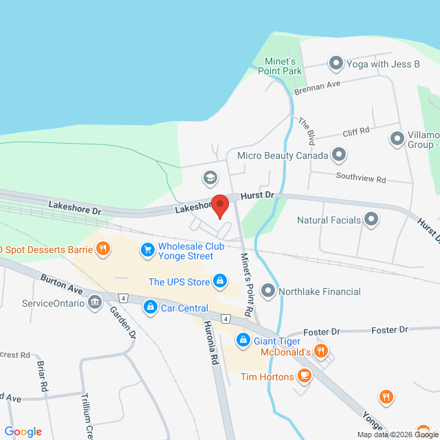 You’ll find a spacious parking lot with easy access from both Lakeshore Drive and Minet’s Point Road. Accessible parking and ramp entry are available. While our clinic doors are not automated, our team is always happy to assist and ensure a comfortable experience for guests of all abilities.